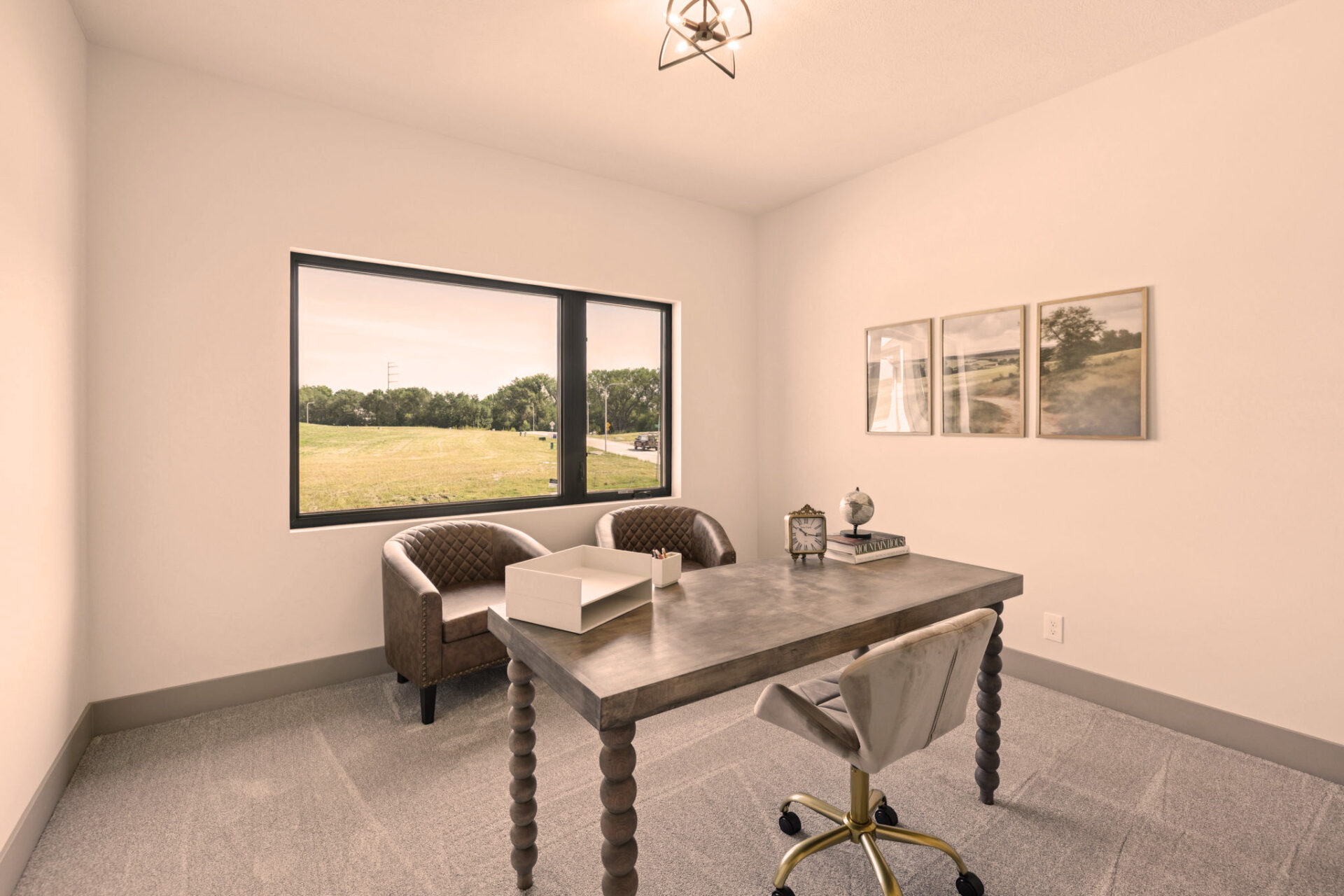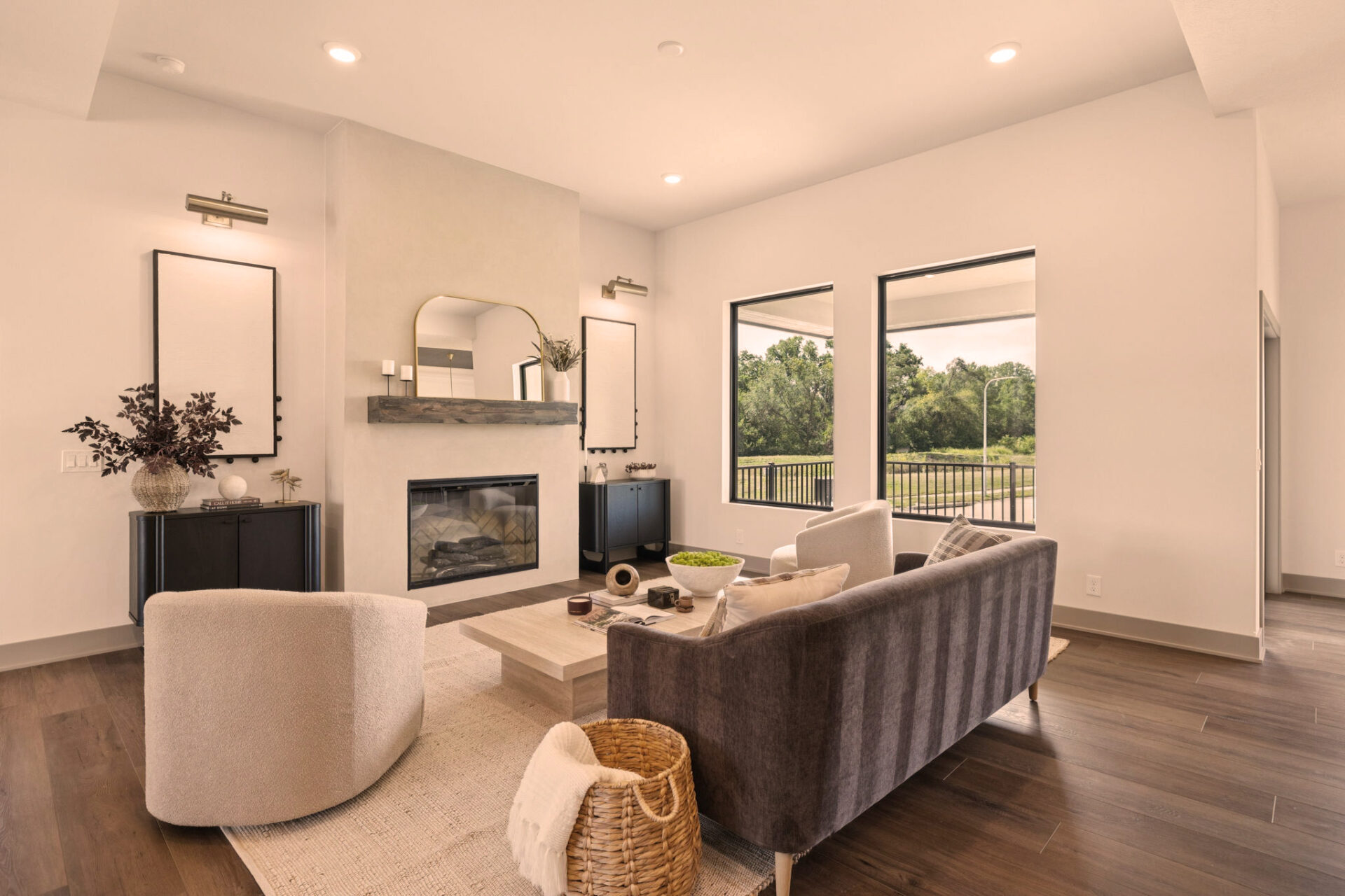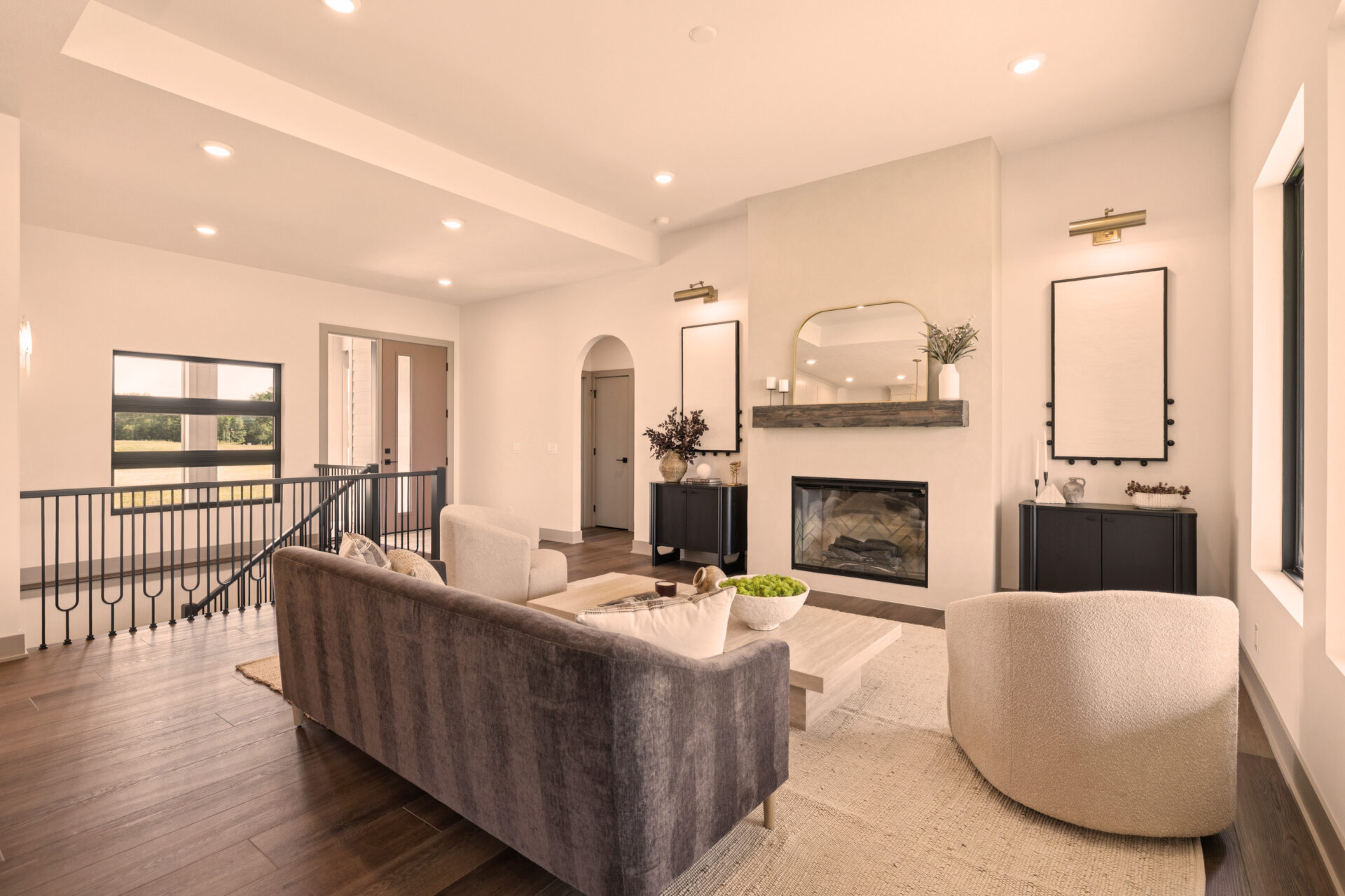 The heart of the home is its open-concept design, where the kitchen effortlessly flows into the living and dining areas. This layout promotes a sense of togetherness and ease of movement. The Eat-In Island Kitchen is perfect for casual meals or culinary adventures, and it opens up to the spacious main floor Gathering Room, creating an ideal space for both everyday living and festive gatherings.