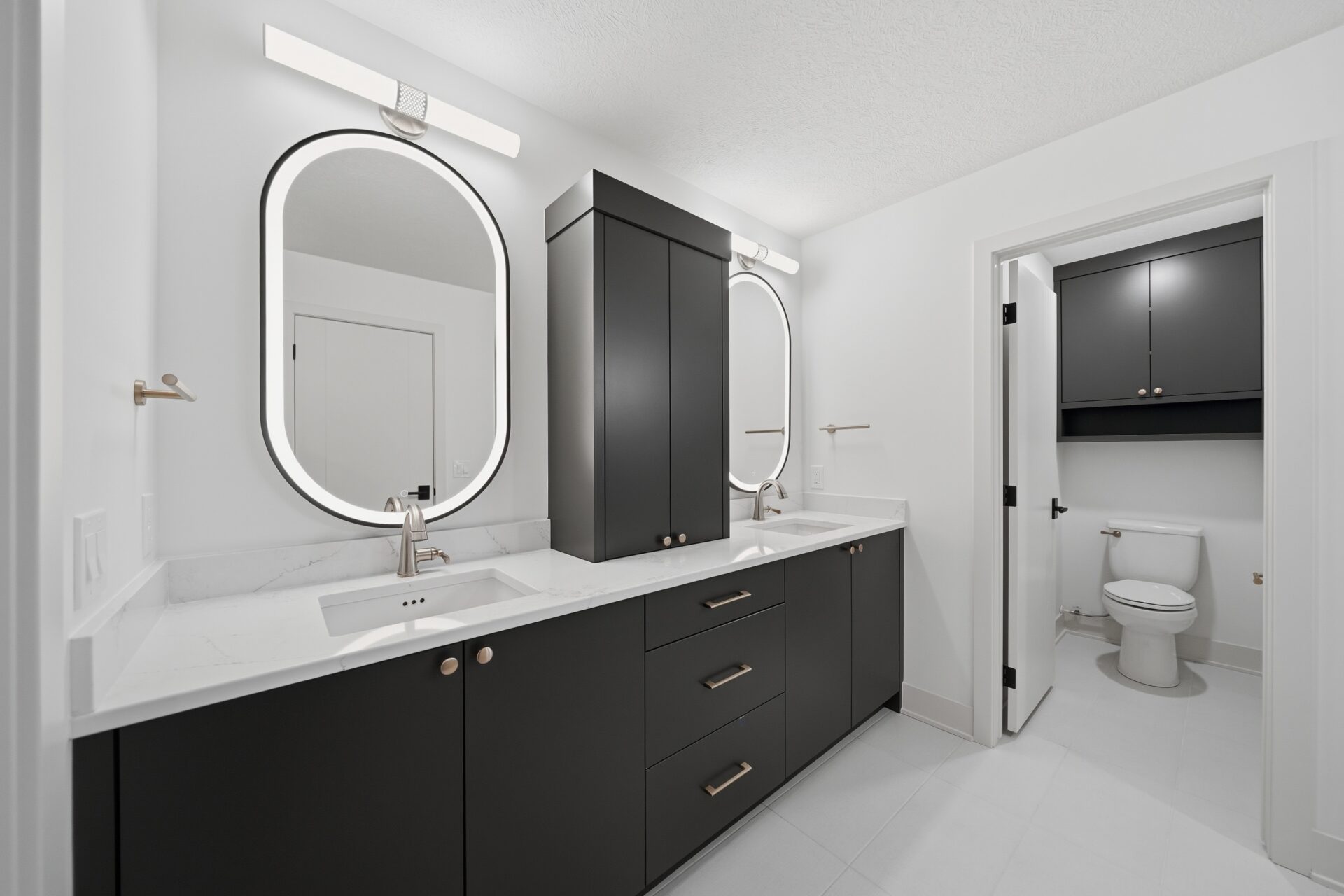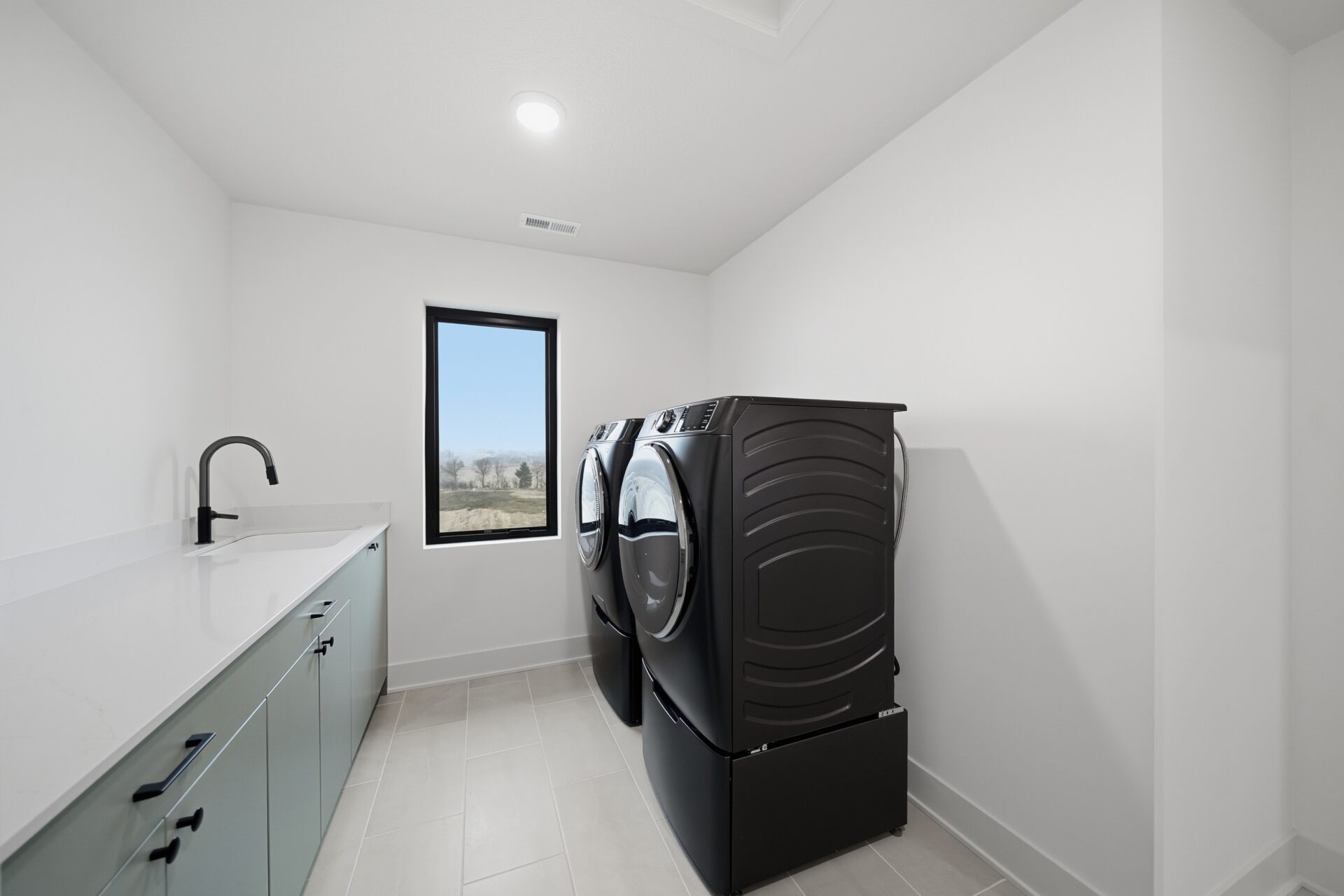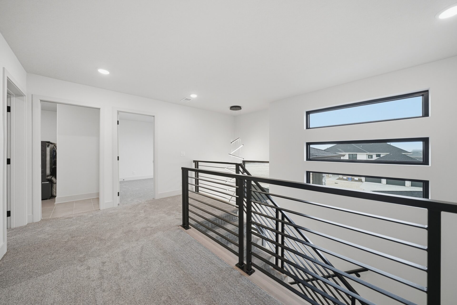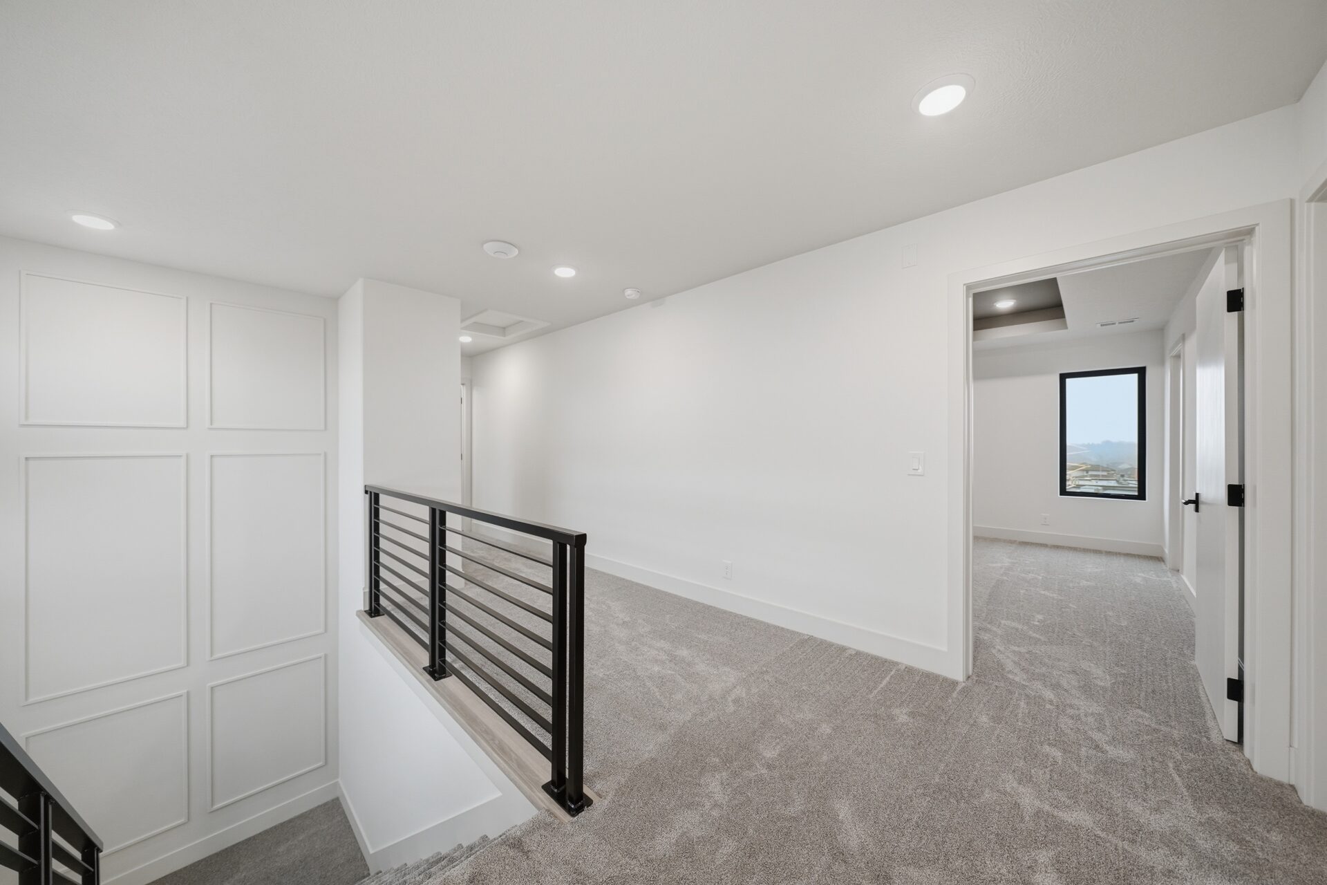 Upstairs, the private living spaces are designed with intention. A dedicated laundry room adds convenience, while the primary bedroom and bath offer a relaxing retreat with thoughtful finishes. Two additional bedrooms share a well‑appointed bathroom, and each enjoys easy access to the bright, open landing.