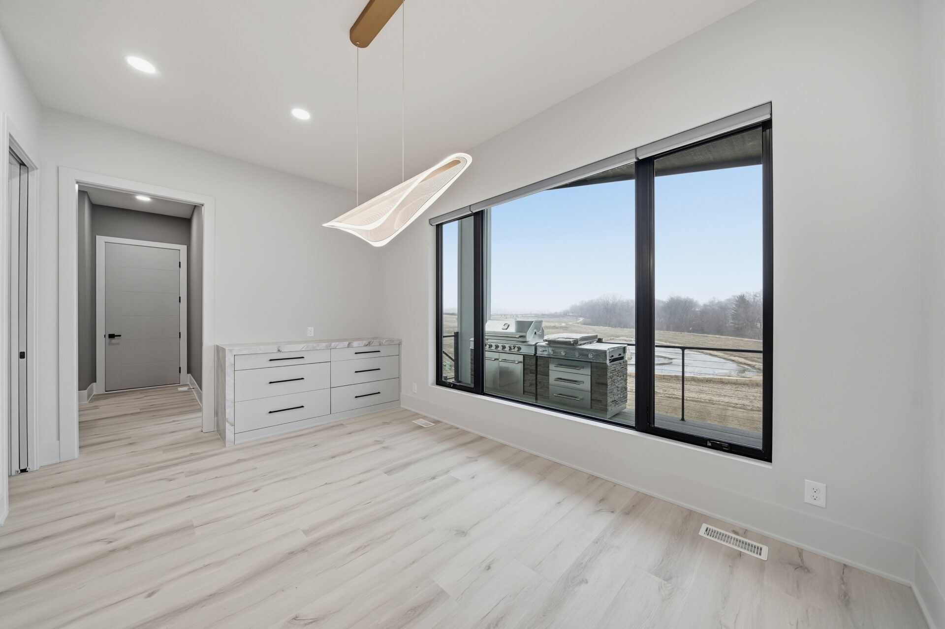 A privately positioned primary suite anchors the main floor, offering a serene retreat with a spacious bath and closet. Nearby, a dedicated office provides the perfect space for work, study, or quiet focus without sacrificing connection to the main living areas.