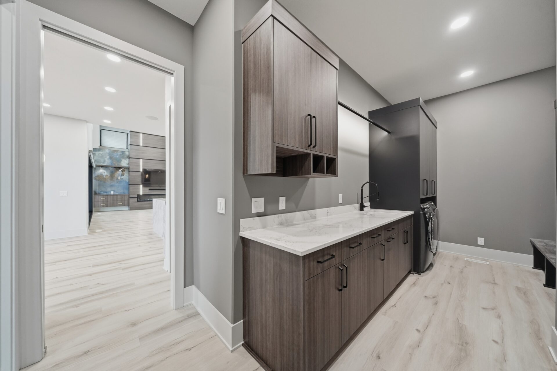 The Kingston delivers bold modern craftsmanship paired with a layout built for comfort, flexibility, and elevated everyday living. The main level opens with expansive, light‑filled living spaces that flow effortlessly between the great room, kitchen, and dining area. Creating a warm, welcoming hub for gathering and entertaining.
