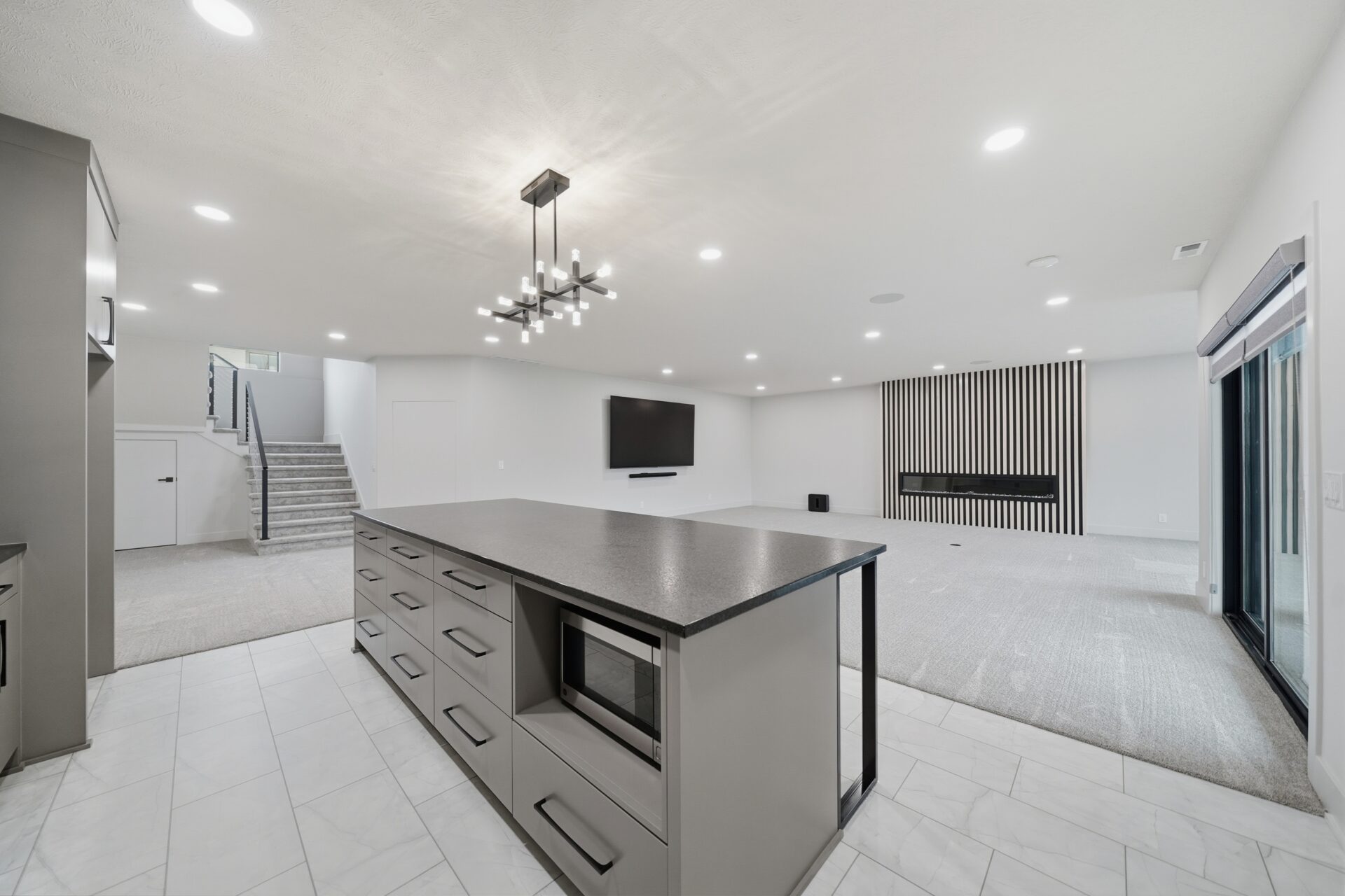 The finished lower level expands the home’s livability even further. A stylish bar opens to a large living room designed for movie nights, game days, or casual gatherings. A private bedroom, an exercise room that can double as an additional bedroom, and a full bathroom make this level as functional as it is inviting.